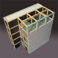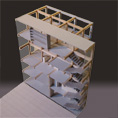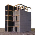 Gemeinschaftspraxis mit darüberliegenden Wohnetagen als mehrgeschössiges Reihenhaus für eine Familie auf dem Burgholzhof in Stuttgart. Kostengünstiger Wohnungsbau mit 2.000 DM/qm BGF.